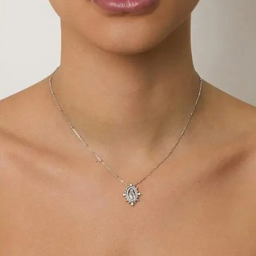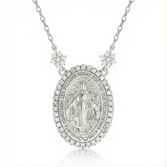 Colar N. Sra. das Graças com Moissanitas e Rosetinhas
