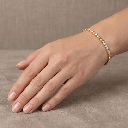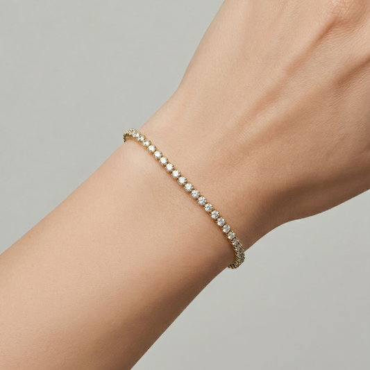 Pulseira Riviera 2mm 3 Garras Banho de Ouro