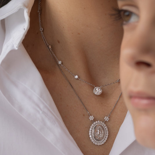 Colar solitário com Moldura de Moissanitas 0,95ct