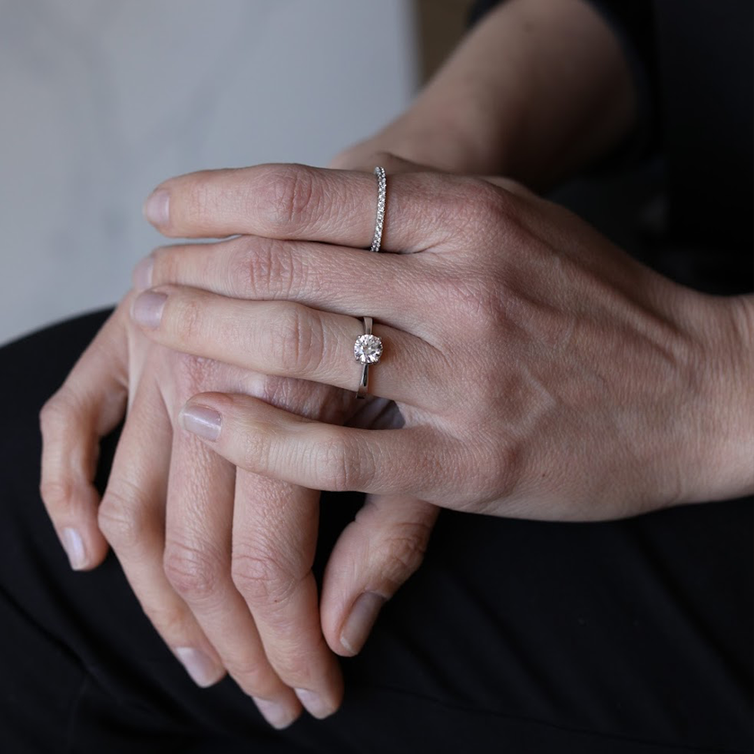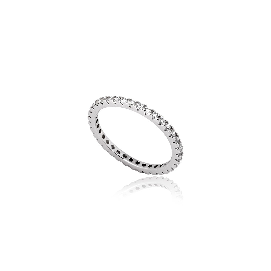 Aliança em prata 925, cravado com zircônias redondas de 1,6mm e acabamento em banho de ródio.