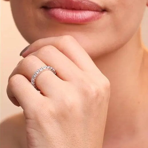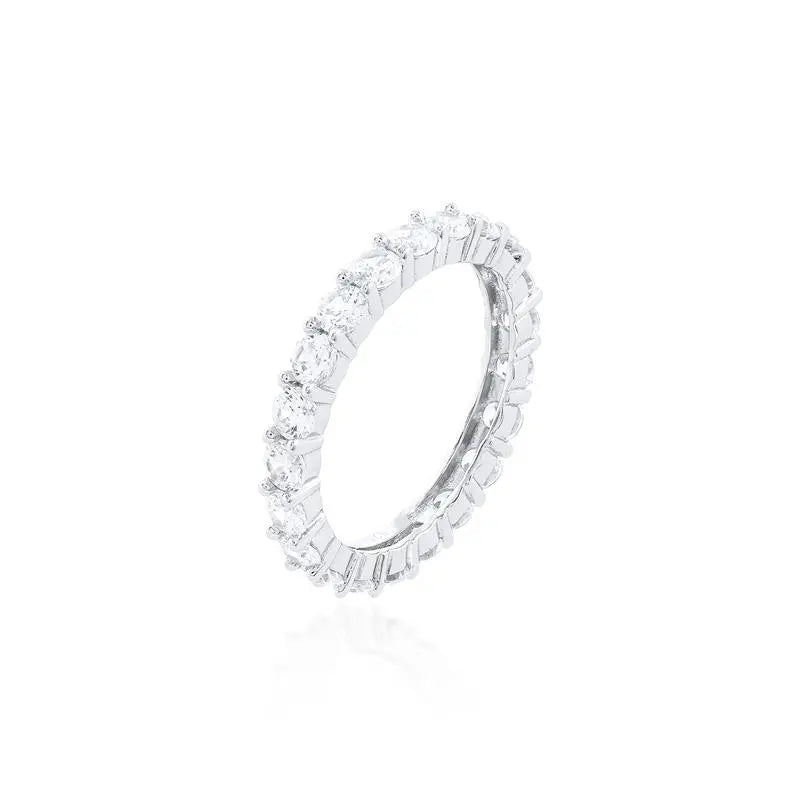 Aliança em prata 925, cravado com zircônias redondas de 3mm e acabamento em banho de ródio.