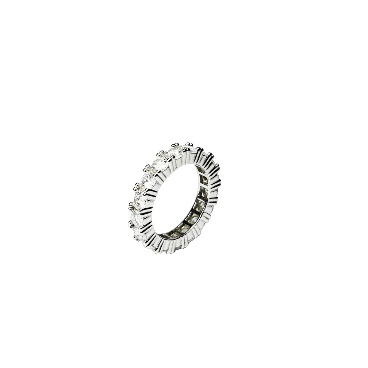 Anel em prata 925, cravado com 4,25ct moissanitas redondas de 3mm de redondas com acabamento em banho de ródio