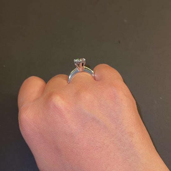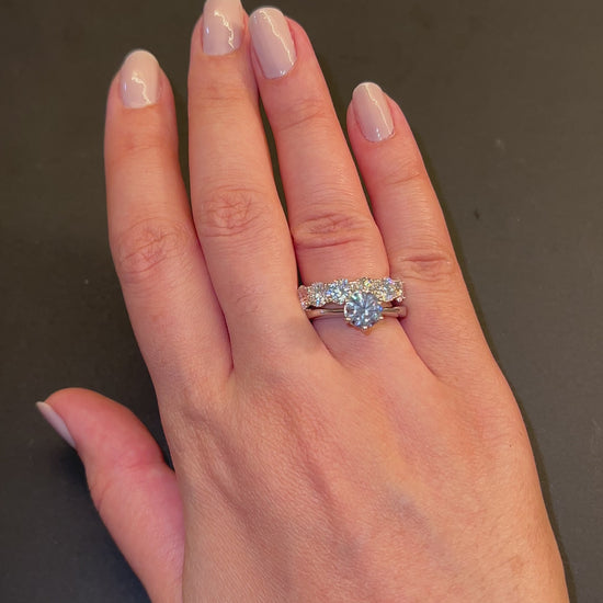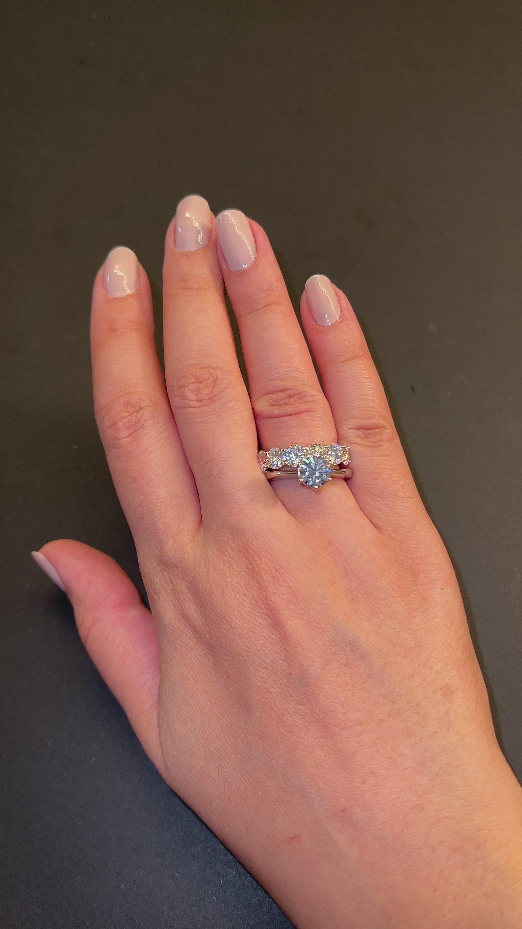 Aliança em prata 925, cravado com 1,25ct de moissanita redonda e acabamento em banho de ródio