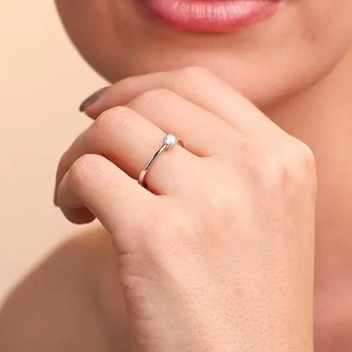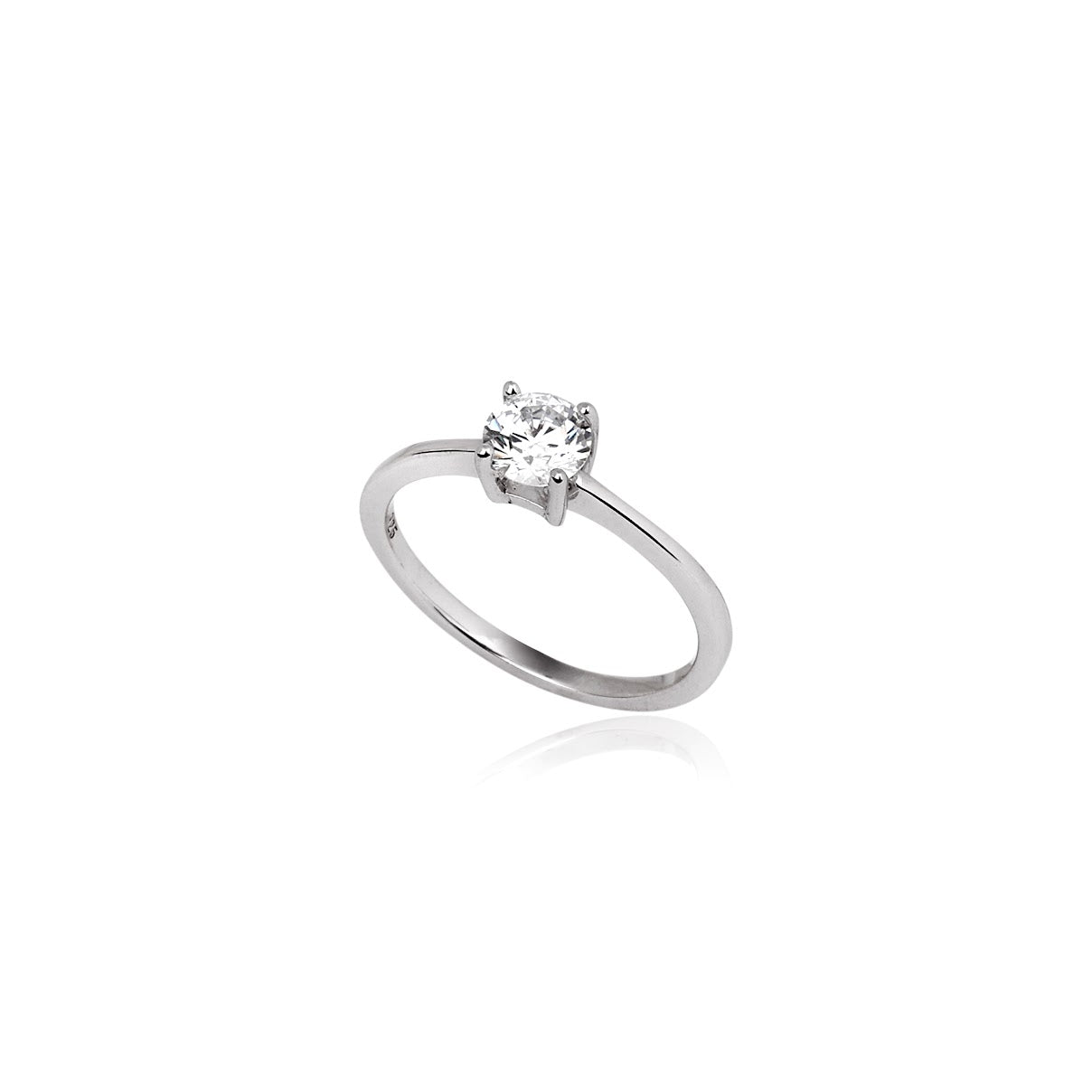 Aliança em prata 925, solitário com zircônia de 5mm e acabamento em banho de ródio.