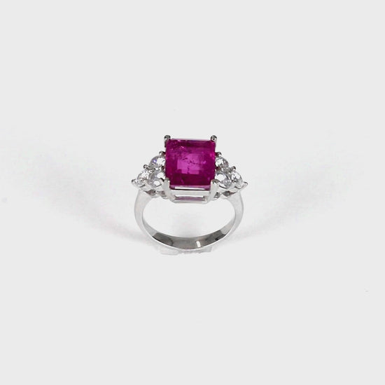 Anel produzido à mão em prata 950, cravado com turmalina rosa fusion oval 9x11, zircônia gotas 3x5 e redonda de 3,5mm com acabamento em banho ródio.