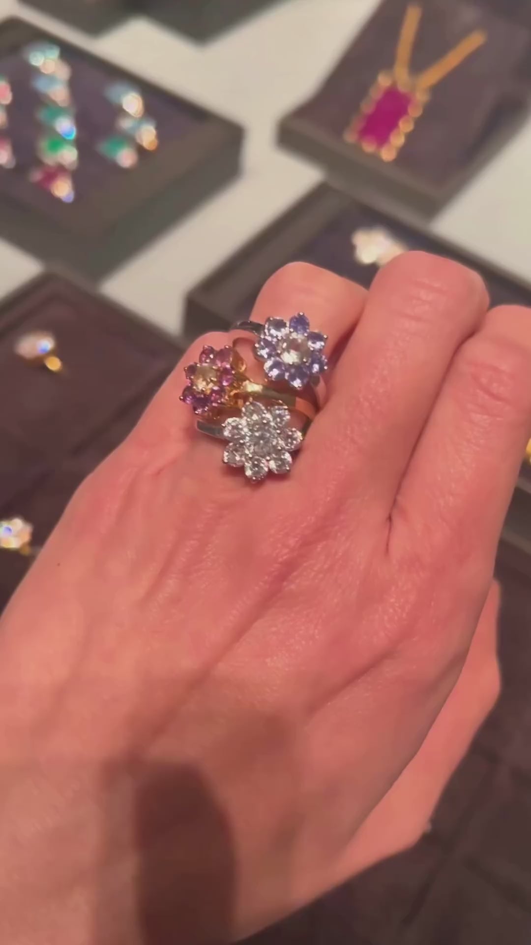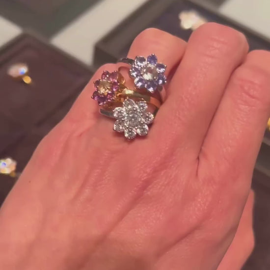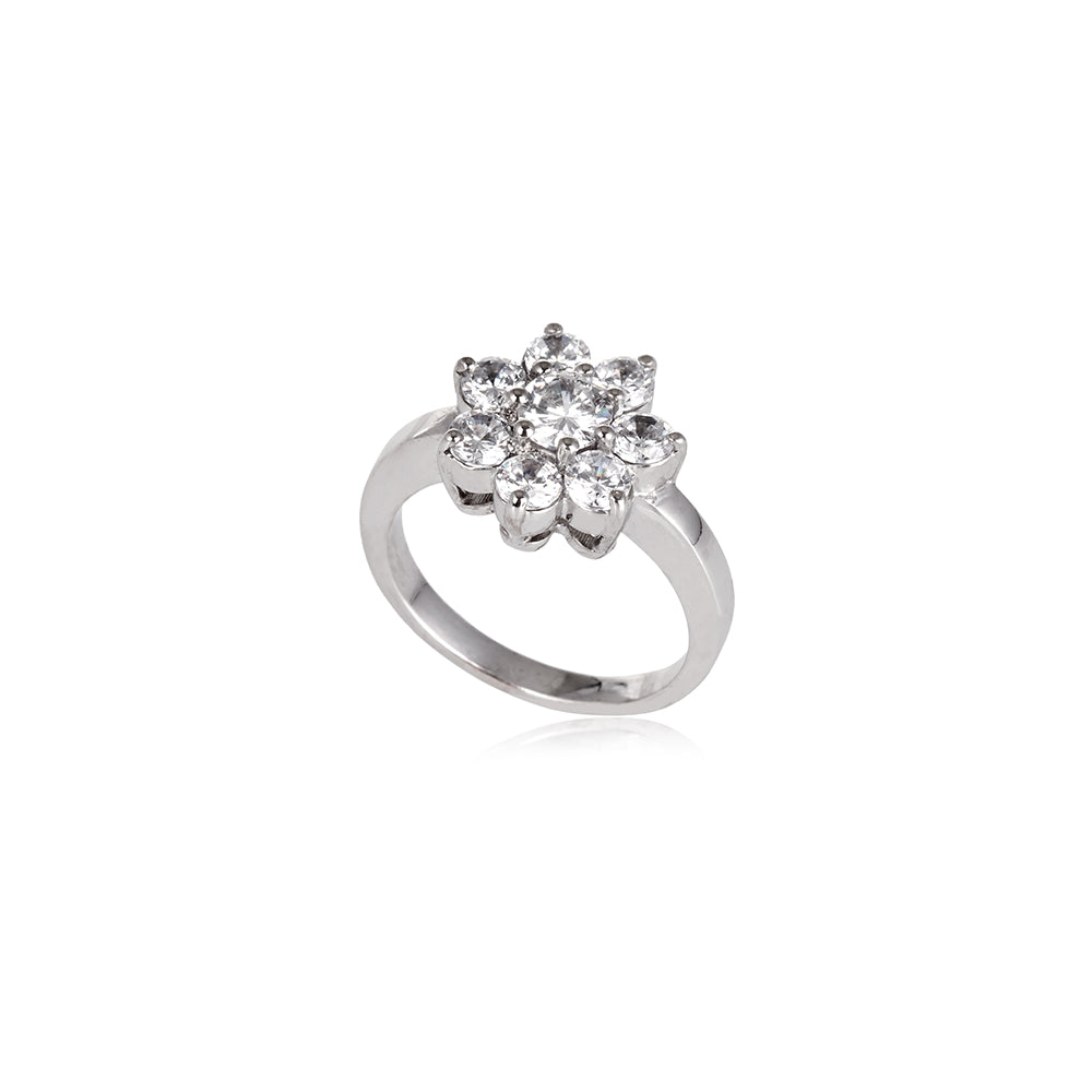 Anel roseta tamanho grande feito à mão em Prata 950, cravado com 1,53ct de moissanitas e banho de ródio.