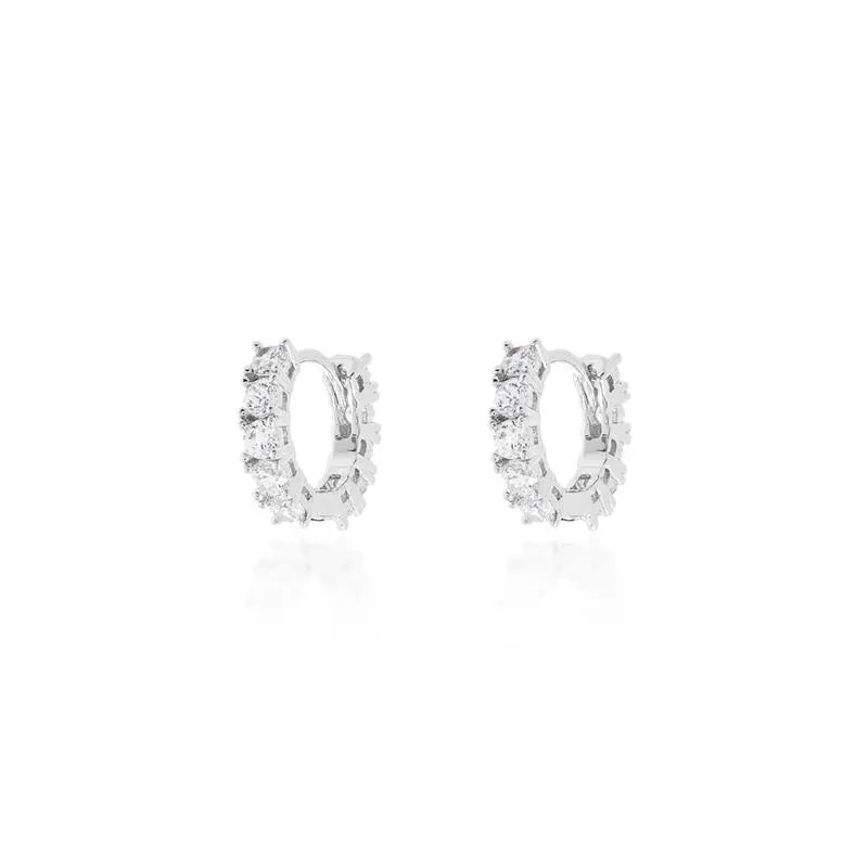 Brinco em prata 925, argola cravada com zircônias redondas, e banho de ródio.