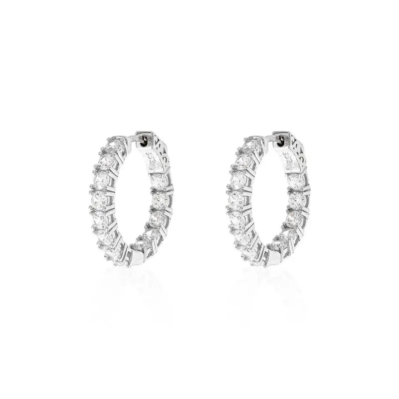 Brinco em prata 925, argola cravado com zircônias redondas 4mm por dentro e por fora, e banho de ródio.