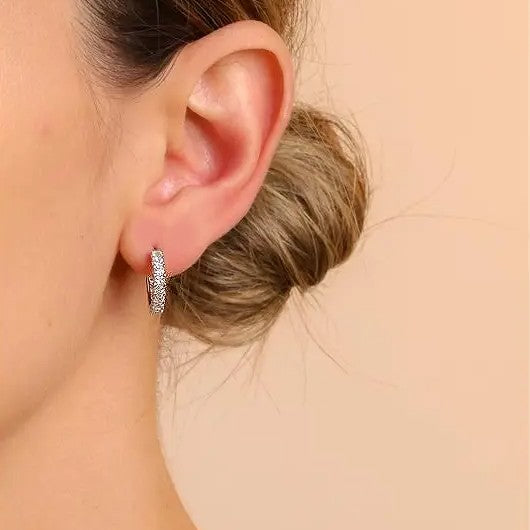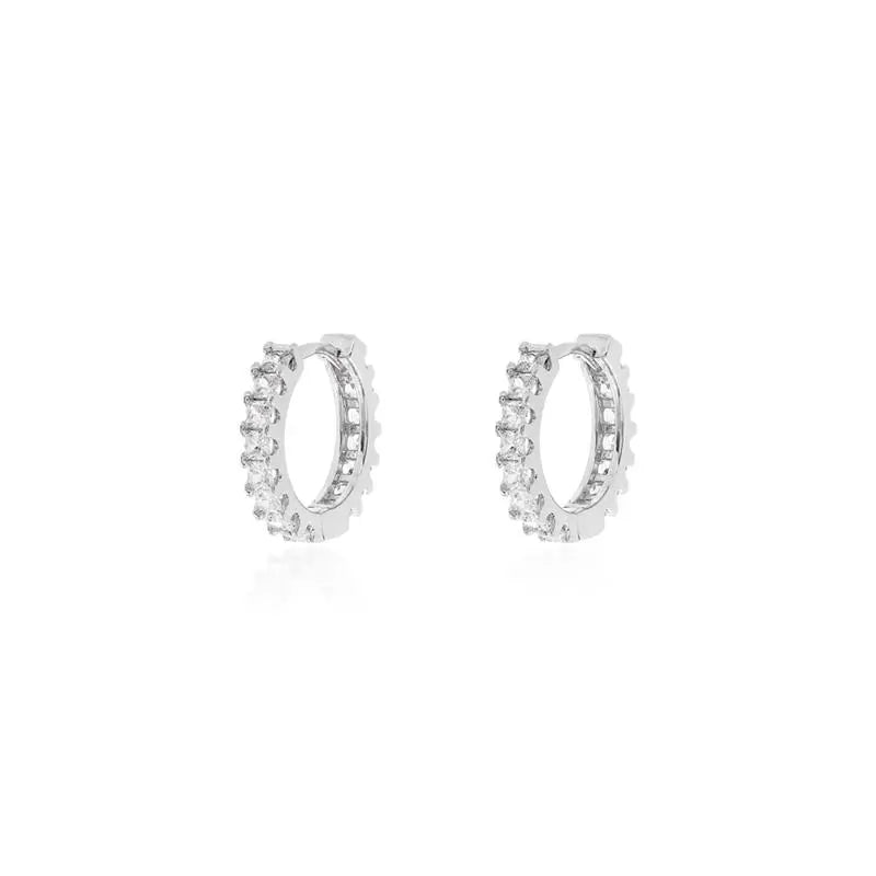 Brinco em prata 925, argola cravado em zircônias baguetes, e banho de ródio.
