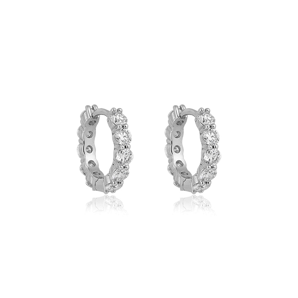 Brinco em prata 925, cravado com 2,0ct de moissanita redondas e acabamento em banho de ródio.