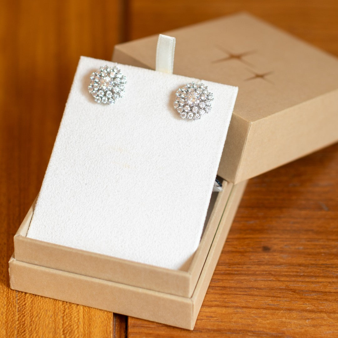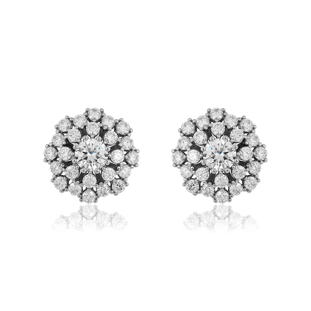 Brinco em prata 925, cravado na garra com moissanitas com acabamento em banho.