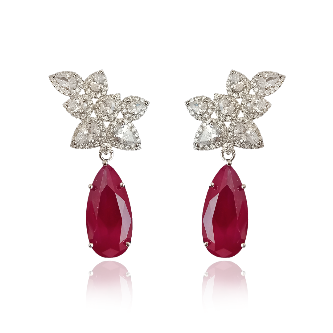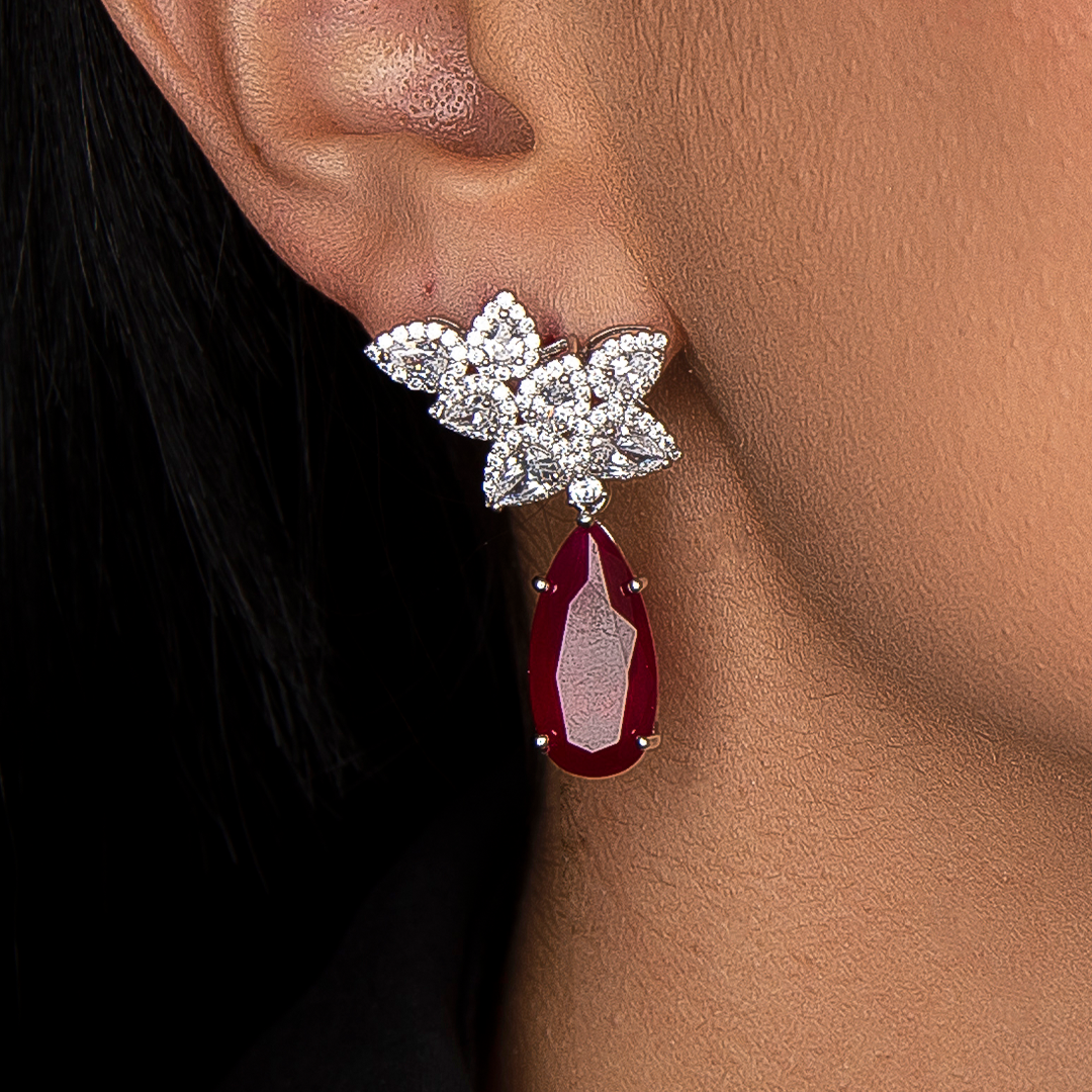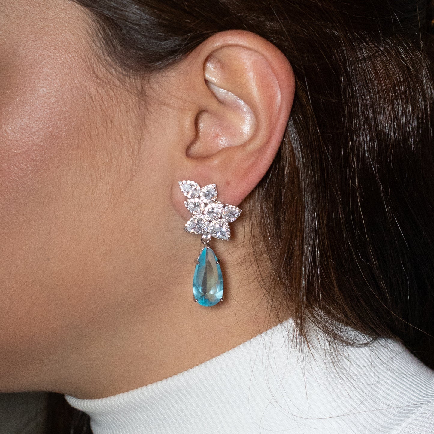 Brinco earcuff em prata 925, cravado em zircônias, gotas de gemas fusion e banho de ródio.