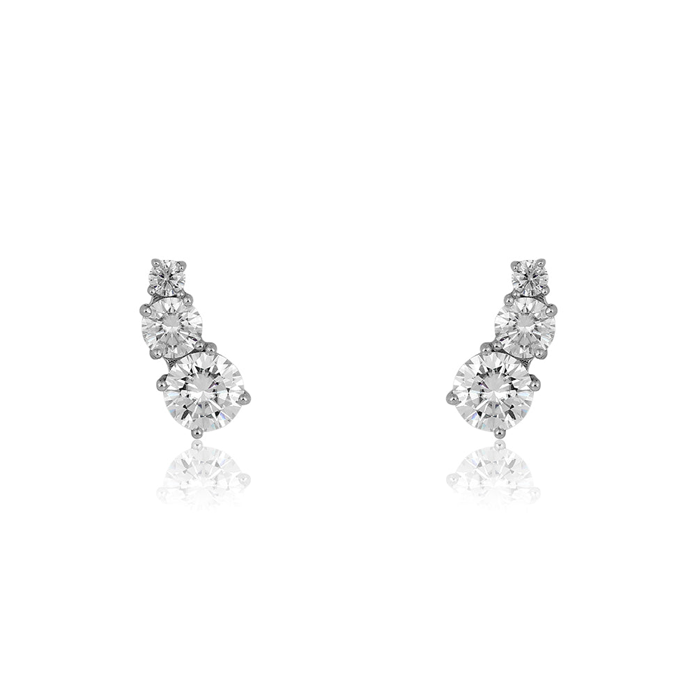 Brinco em prata 925, cravado na garra com moissanitas com acabamento em banho de ródio.