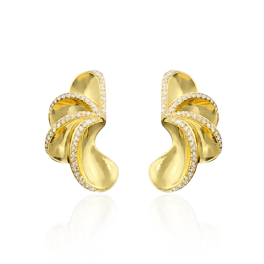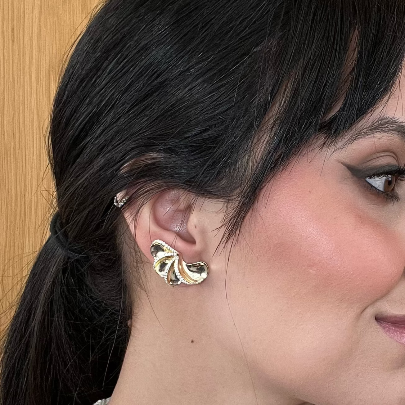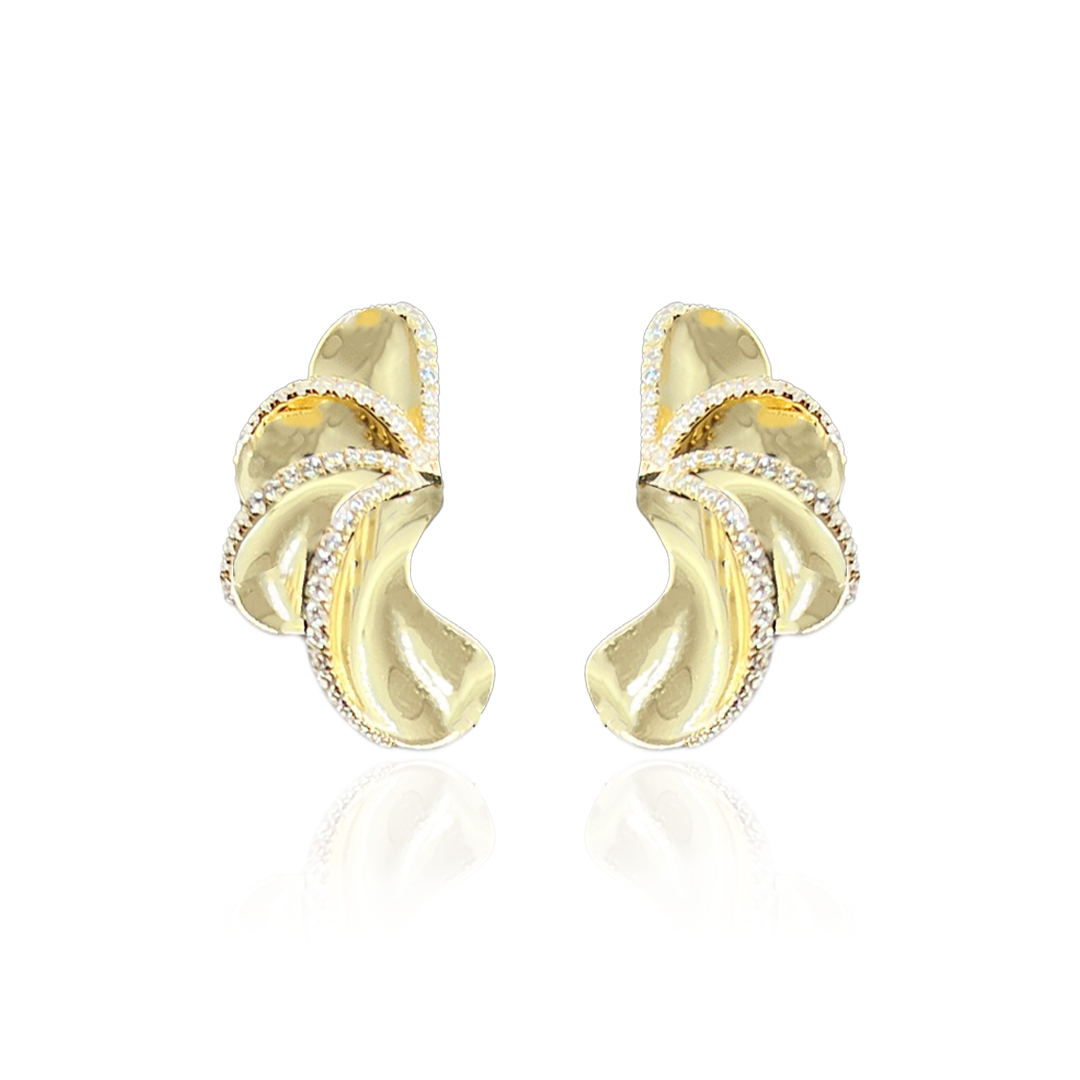 Brinco em prata 925, borda cravada com zircônias e acabamento em banho de ouro amarelo.
