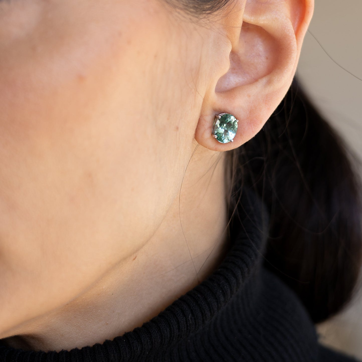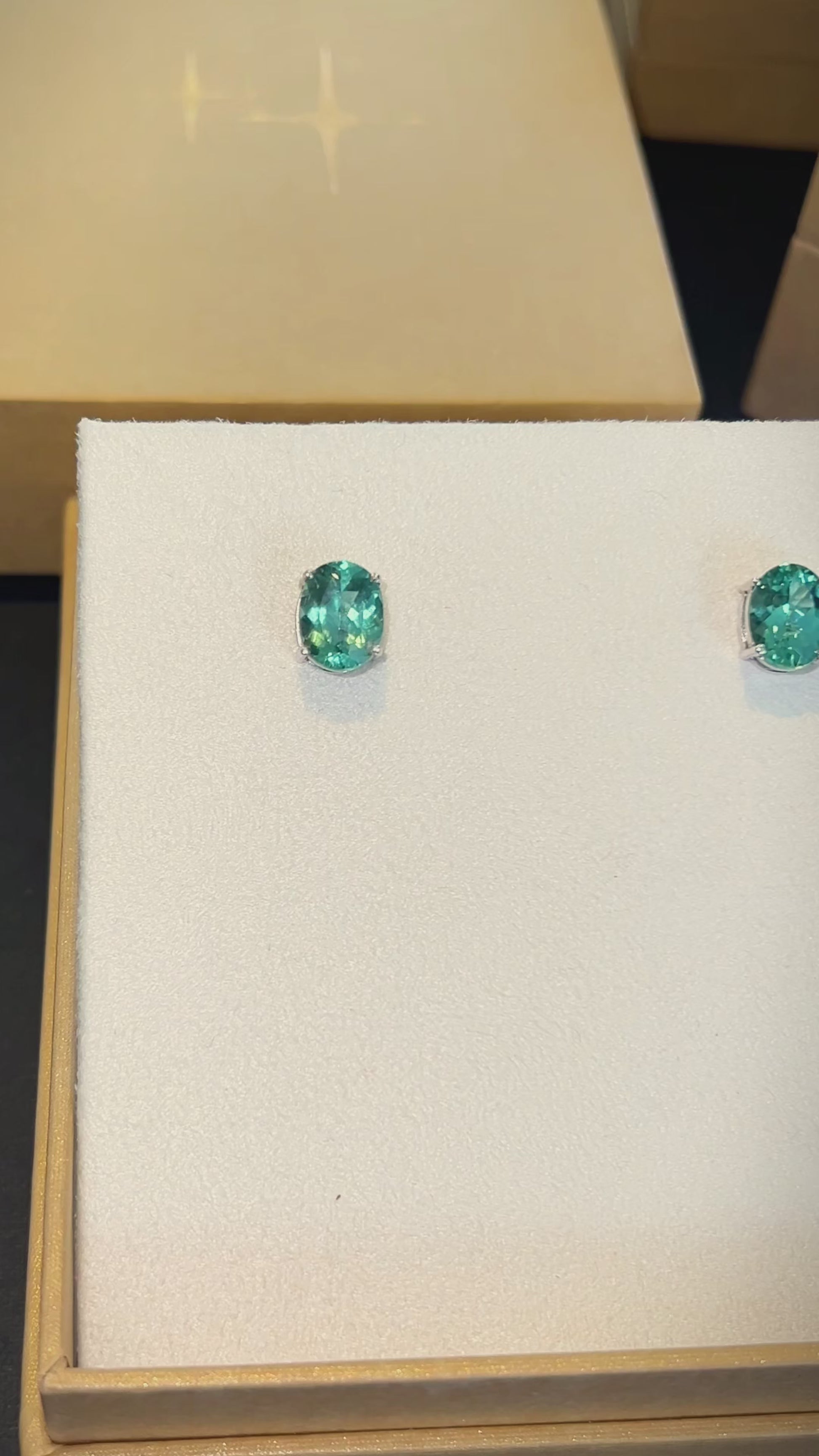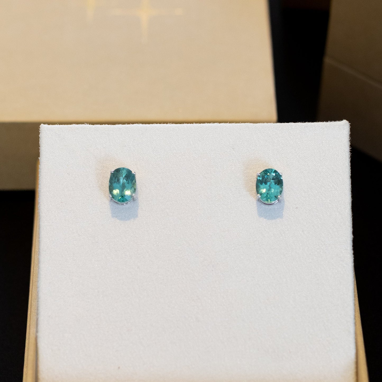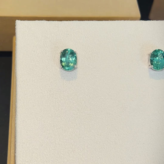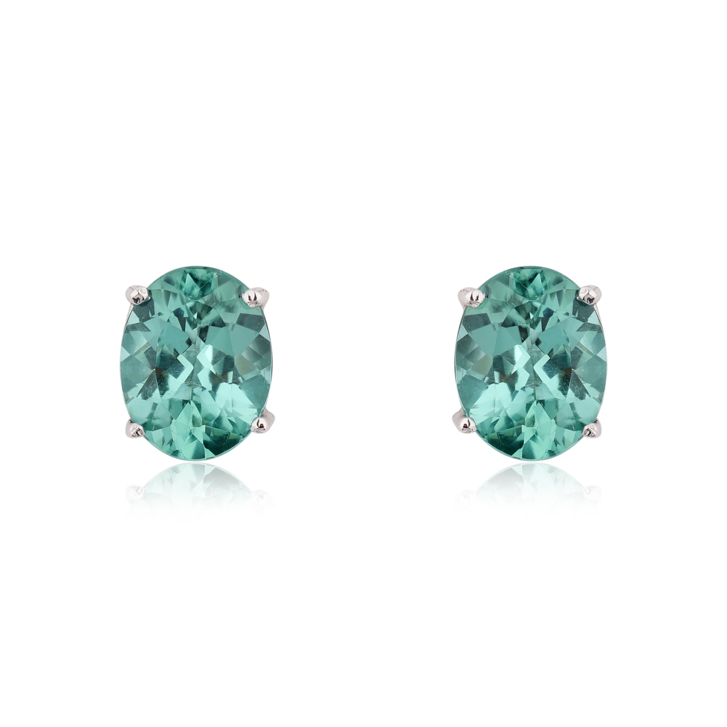 Brinco feito em prata 950 cravado com 4,83ct de turmalina verde medindo 8x10mm cada pedra com banho de ródio.