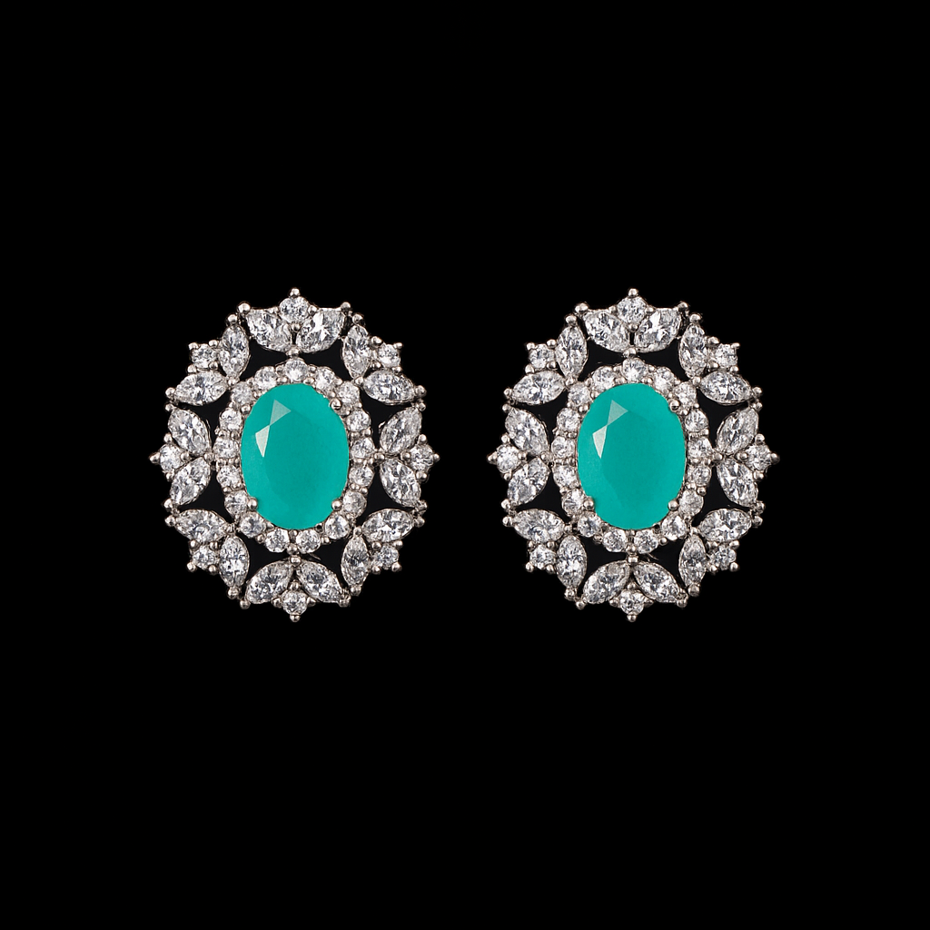 Brinco Turquesa Fusion com Moldura de Zircônias e Banho de Ródio.
