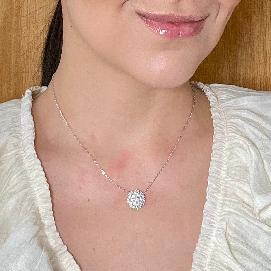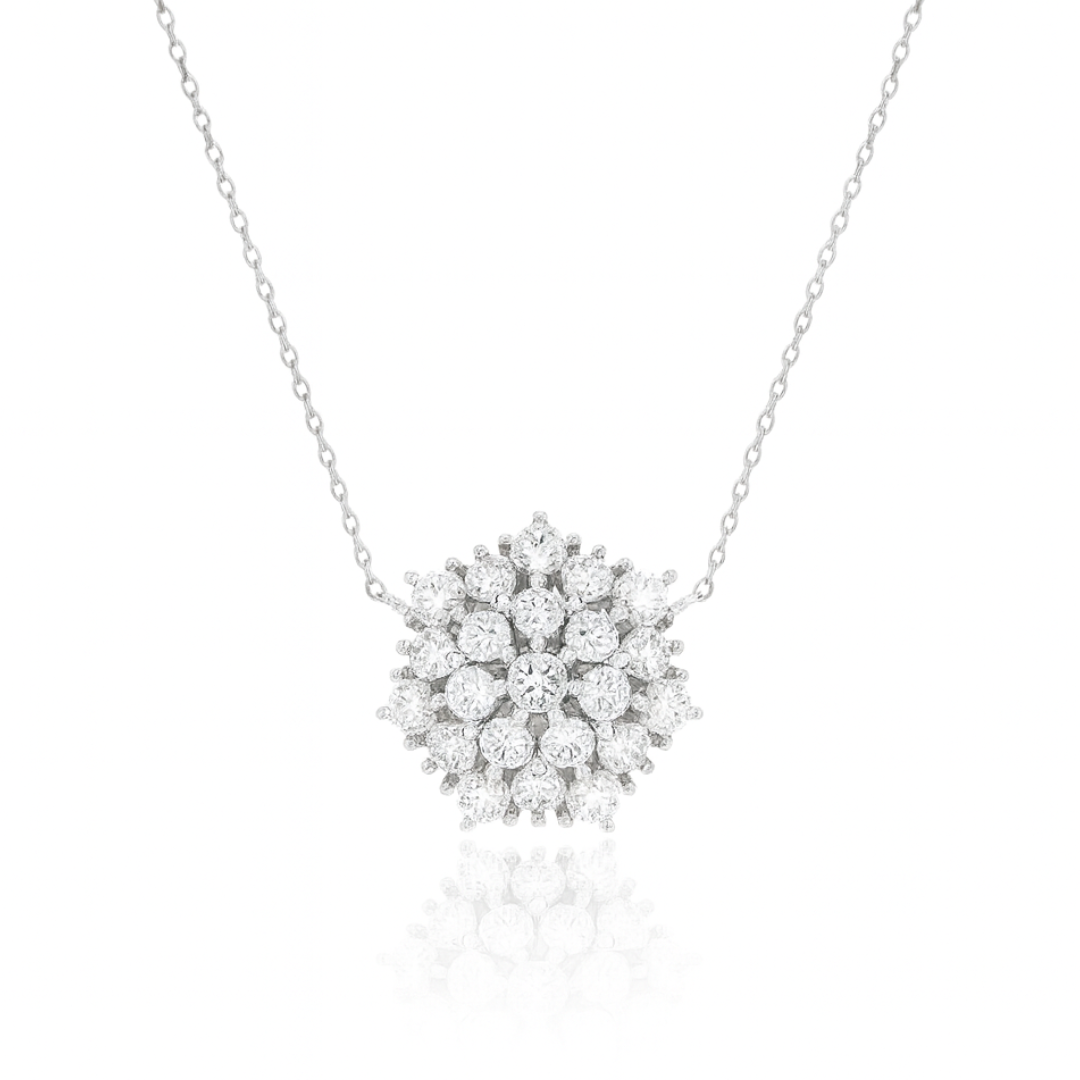 Colar em prata 925, cravado com zircônias e acabamento em banho de ródio.