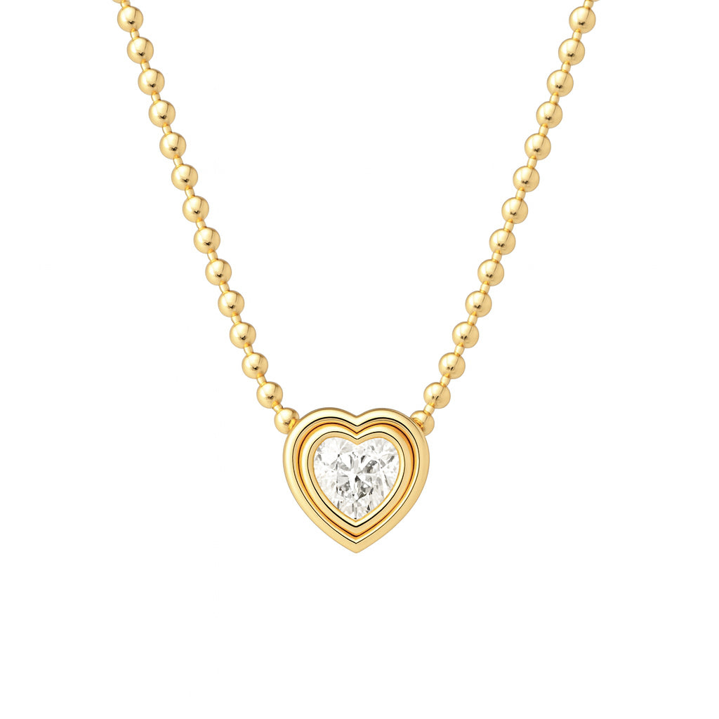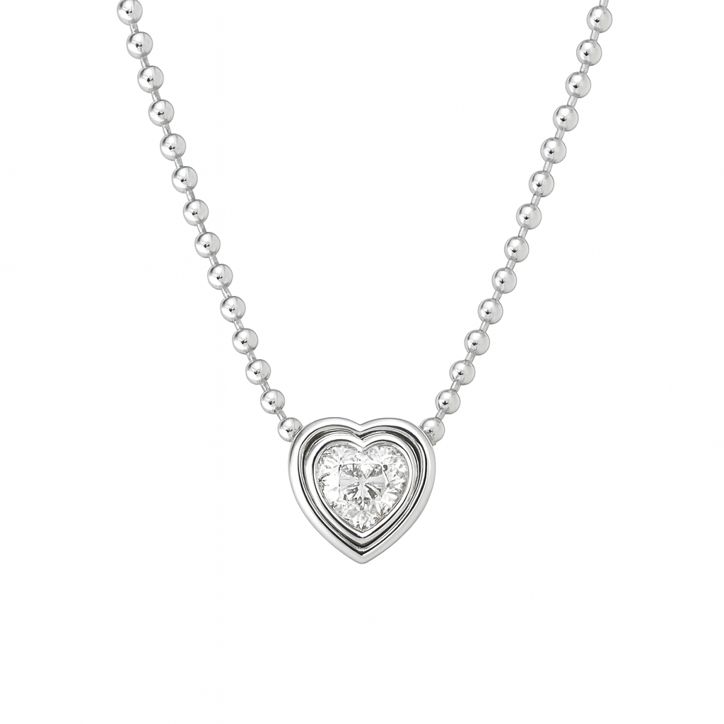Colar em prata 925, cravado com coração de moissanita 4mm com colinhas correntes e acabamento em banho.