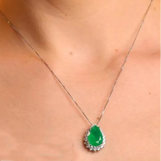 Colar em prata 925 com gema gota fusion com moldura de zircônias, corrente salpicada e acabamento em banho de ródio.