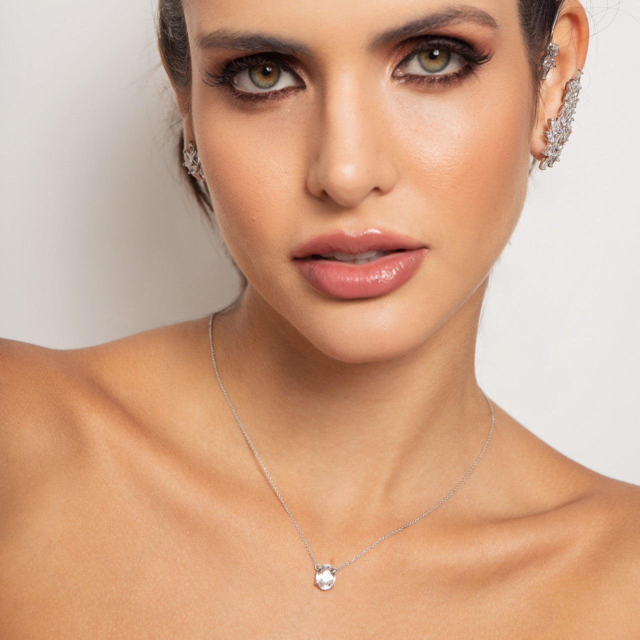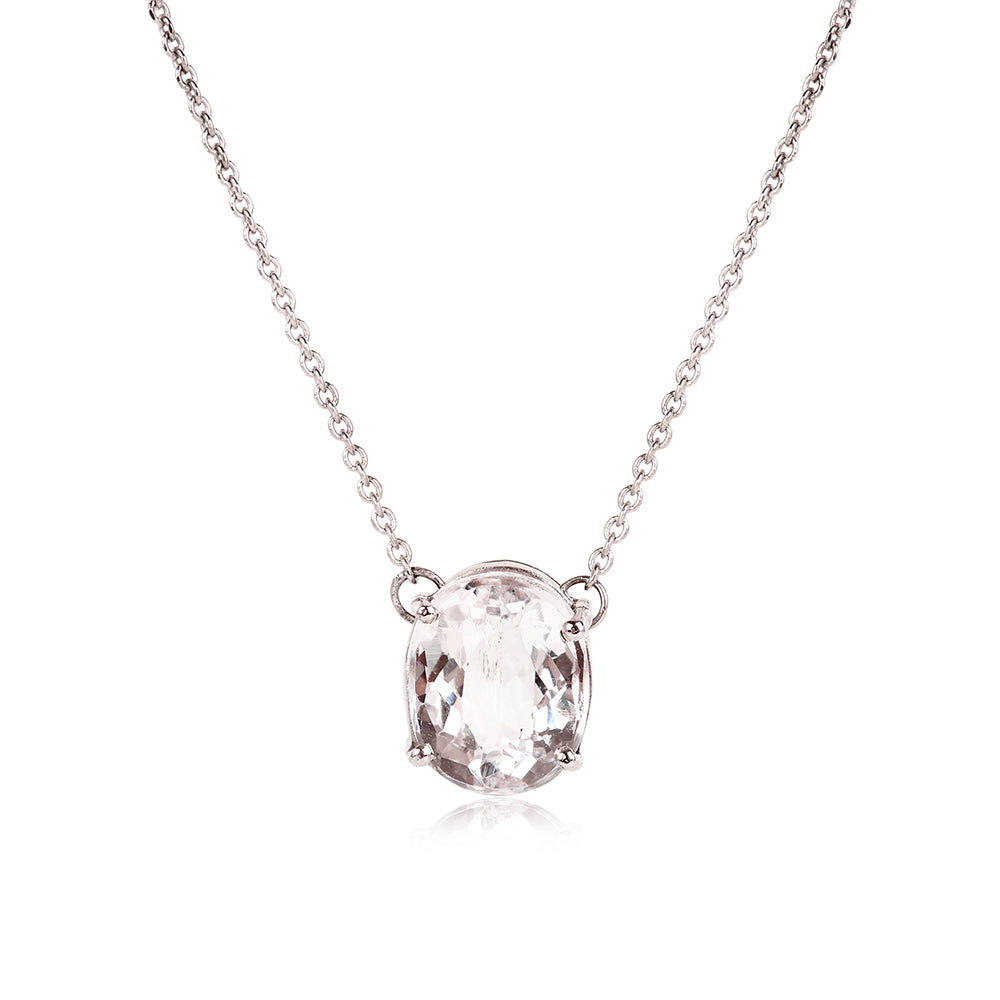 Colar feito à mão em prata 950, cravado com 2,48ct de kunzita oval e banho de ródio. Corrente inclusa de 45cm.