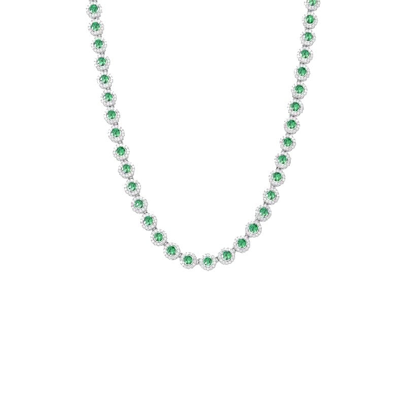 Colar riviera em prata 925, com central e moldura em zircônias e banho de ródio.