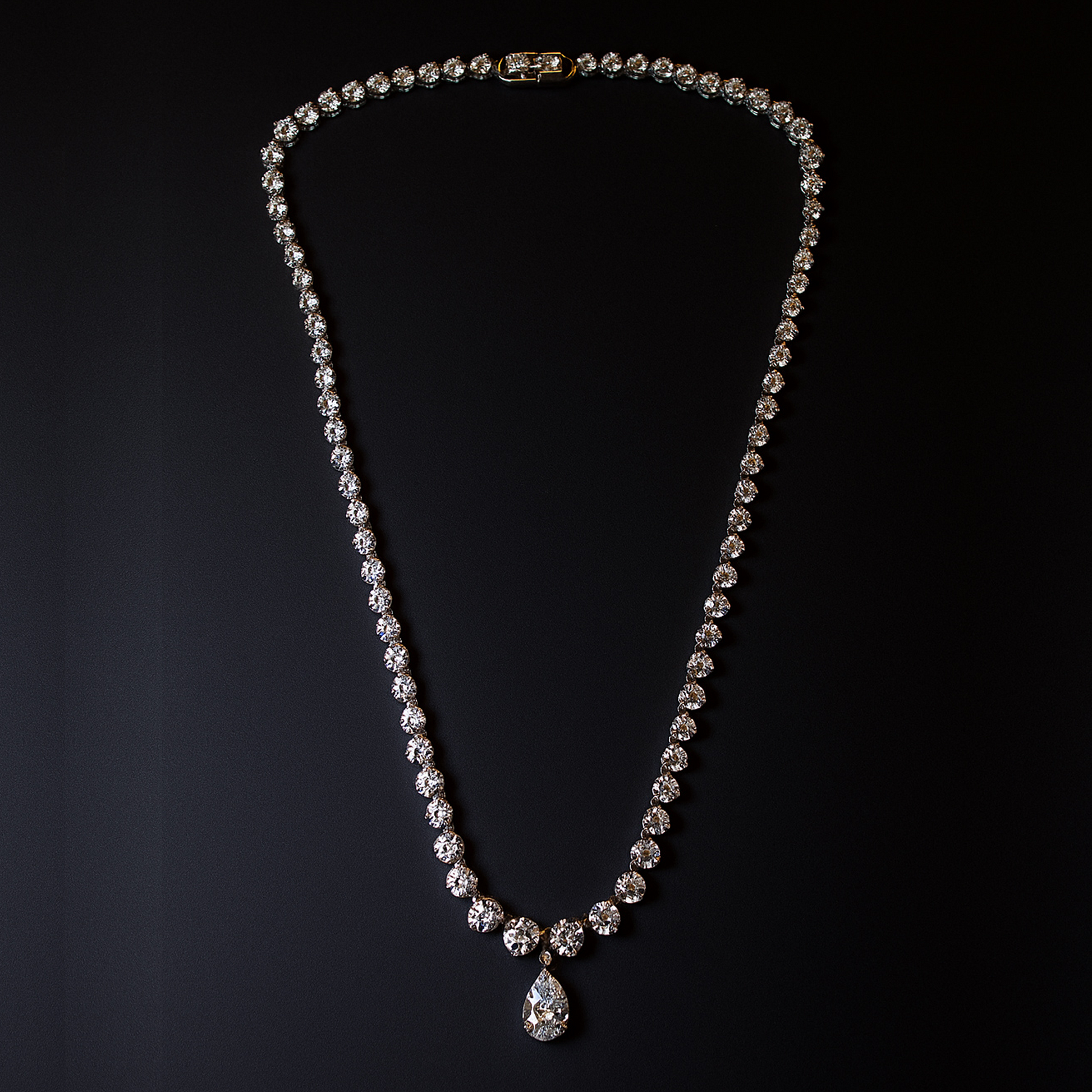 Colar em metal cravado com pavê de zircônias com banho de ródio.