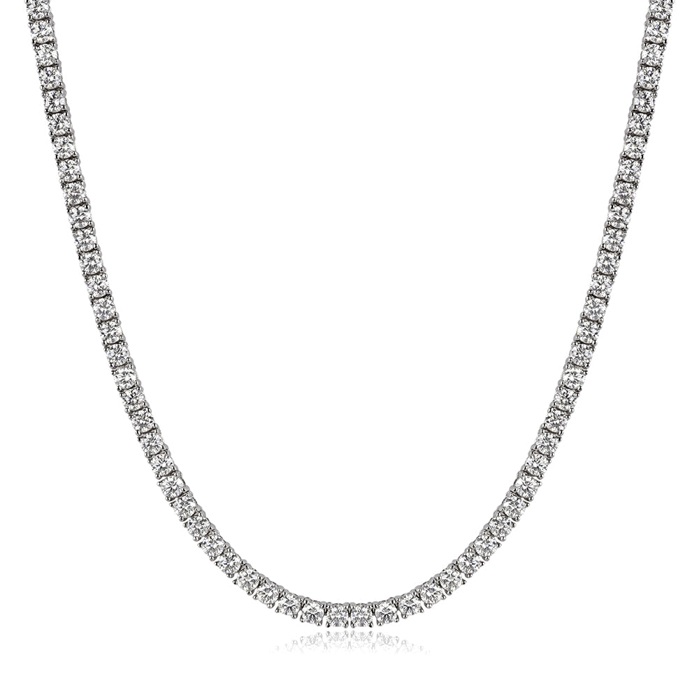 Colar riviera em prata 925, cravado com moissanita de 3mm redondas 4 garras e acabamento em banho de ródio.