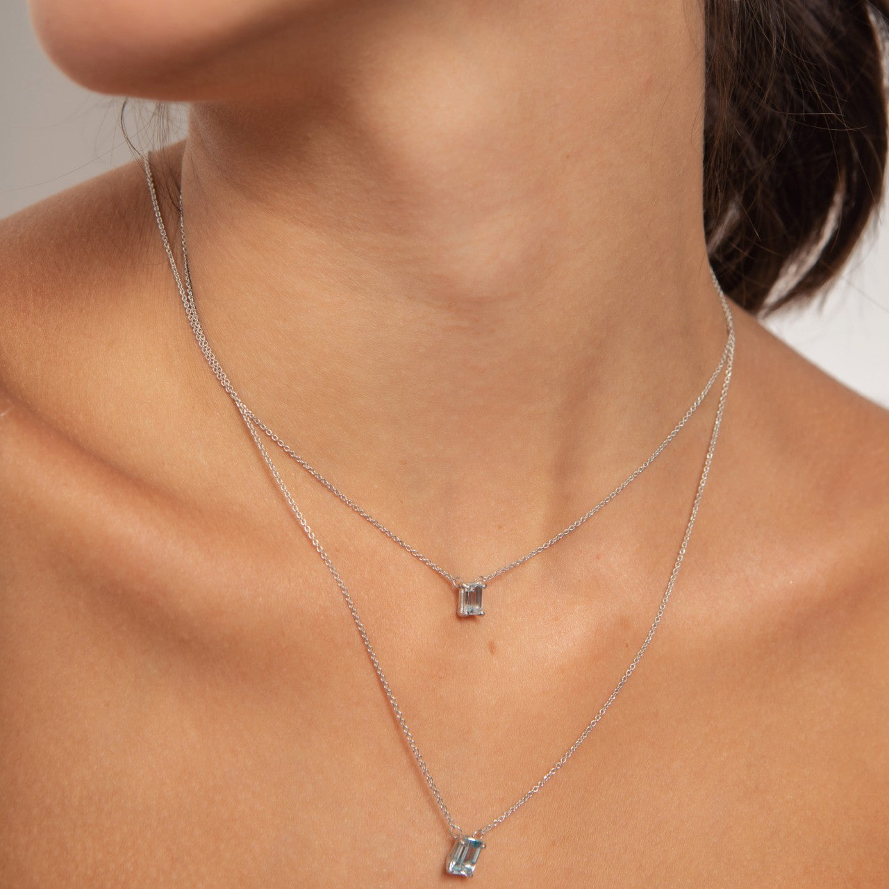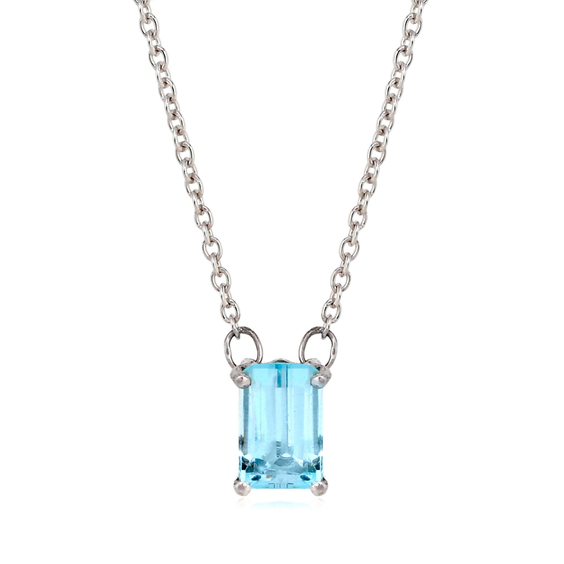Colar feito à mão em prata 950, cravados com 1,43ct de topázio azul baguete natural com banho de ródio. Corrente inclusa 45cm