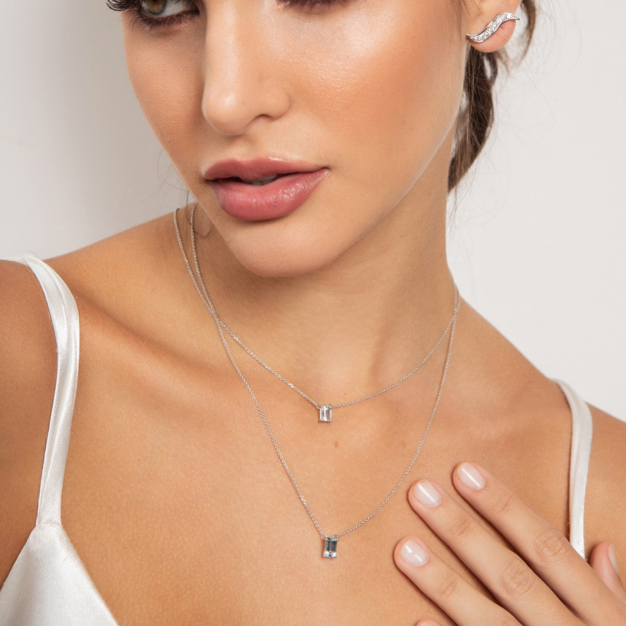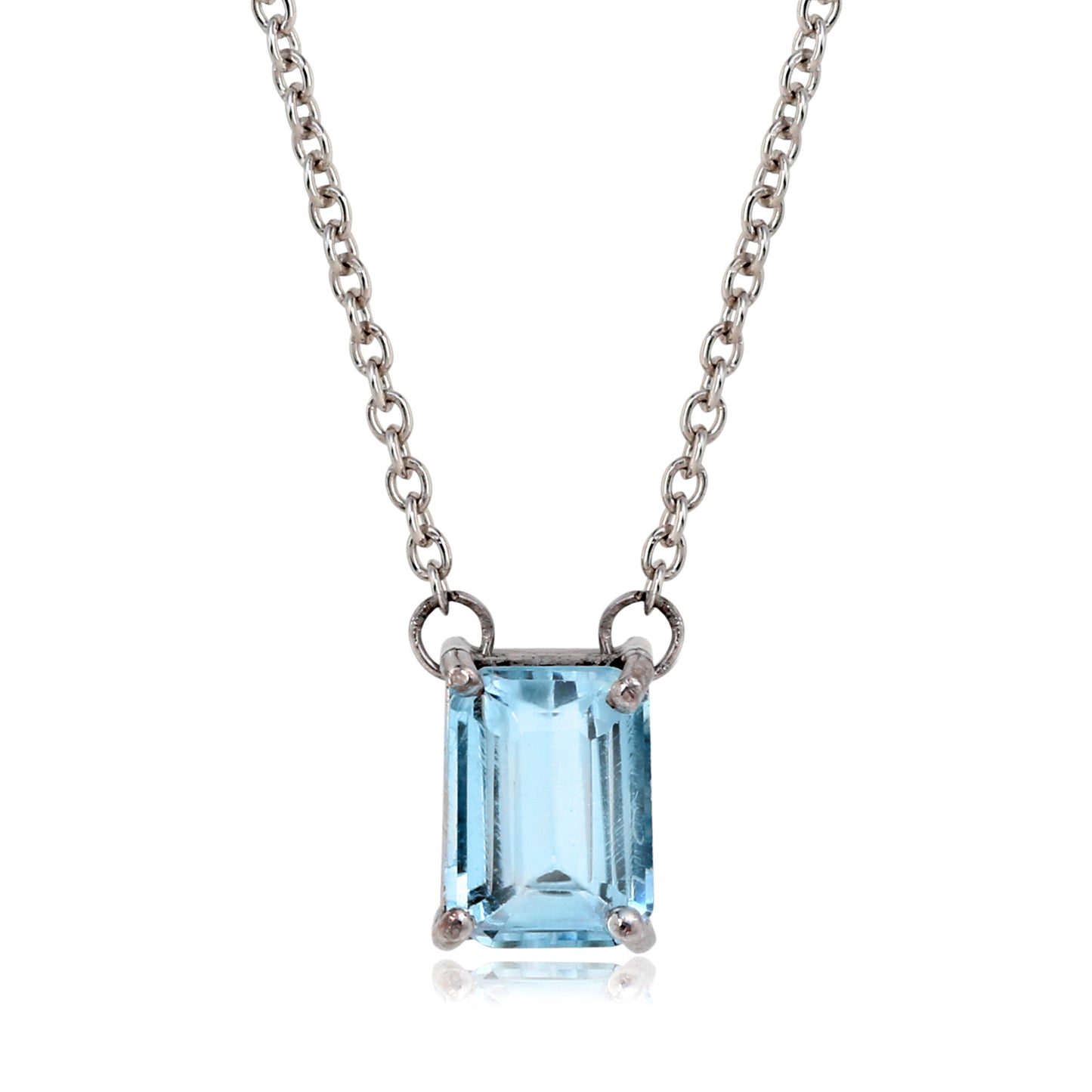 Colar feito à mão em prata 950, cravados com 1,53ct de topázio azul baguete natural com banho de ródio. Corrente inclusa 45cm