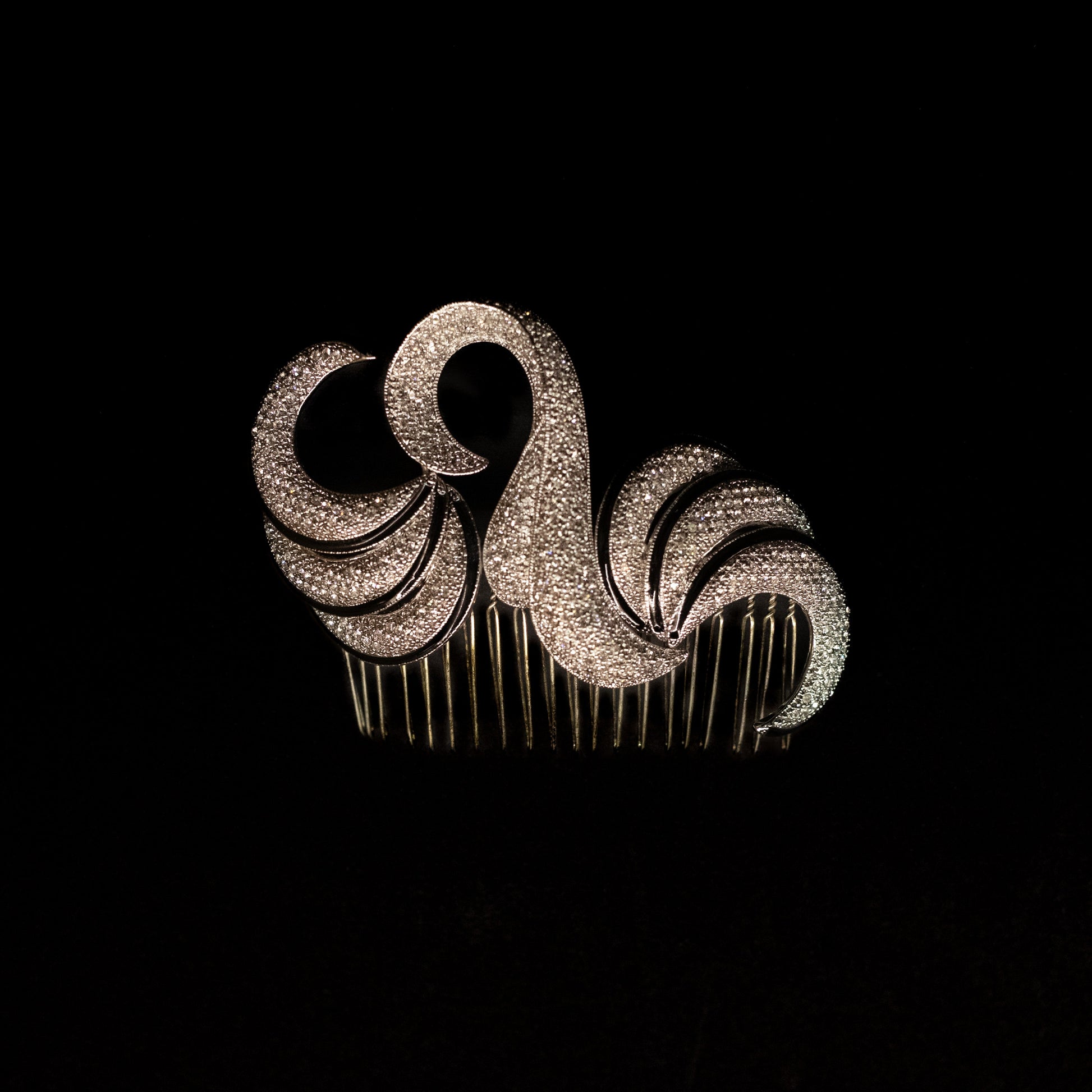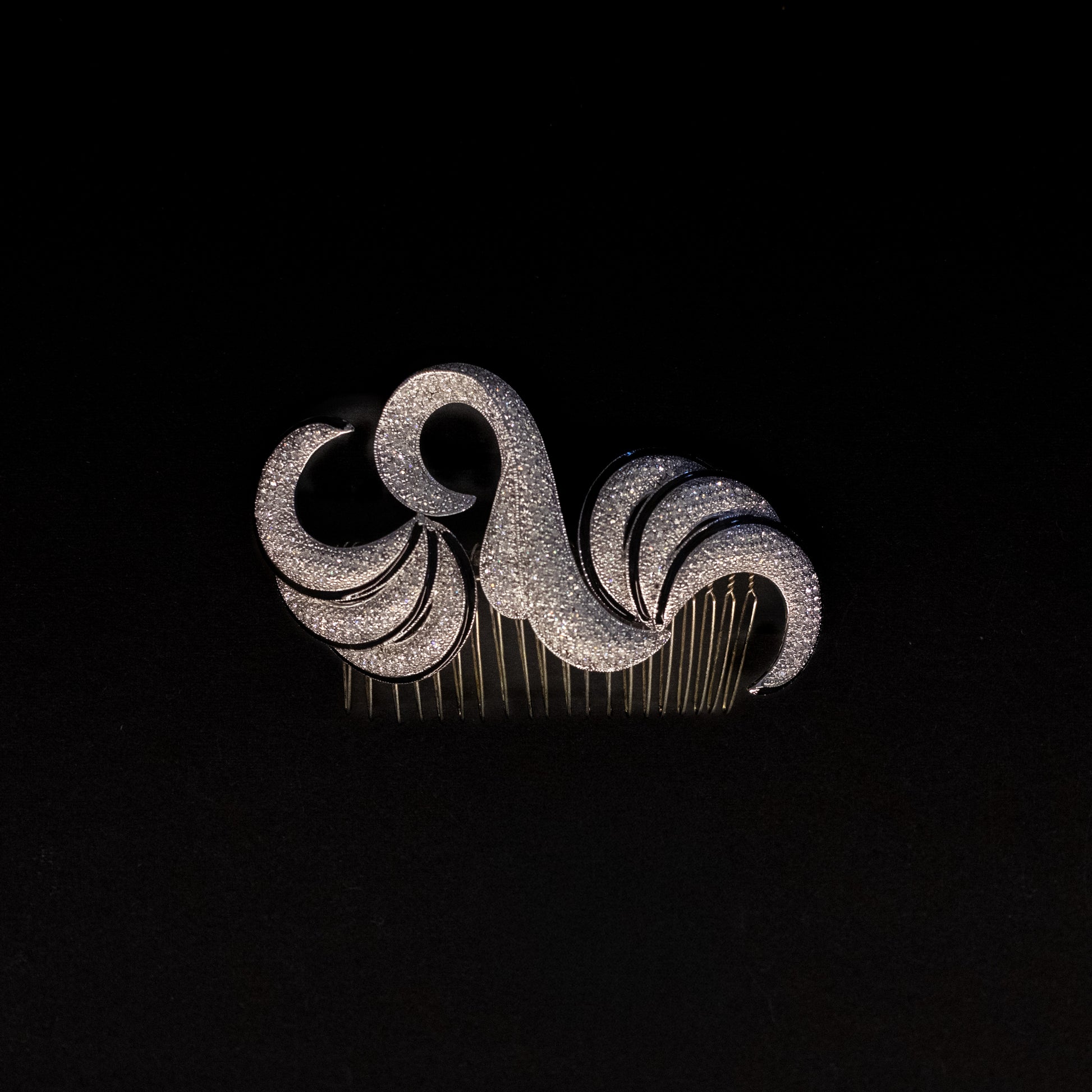 Pente estilo vintage australiano feito em metal, com esmalte e cristais.