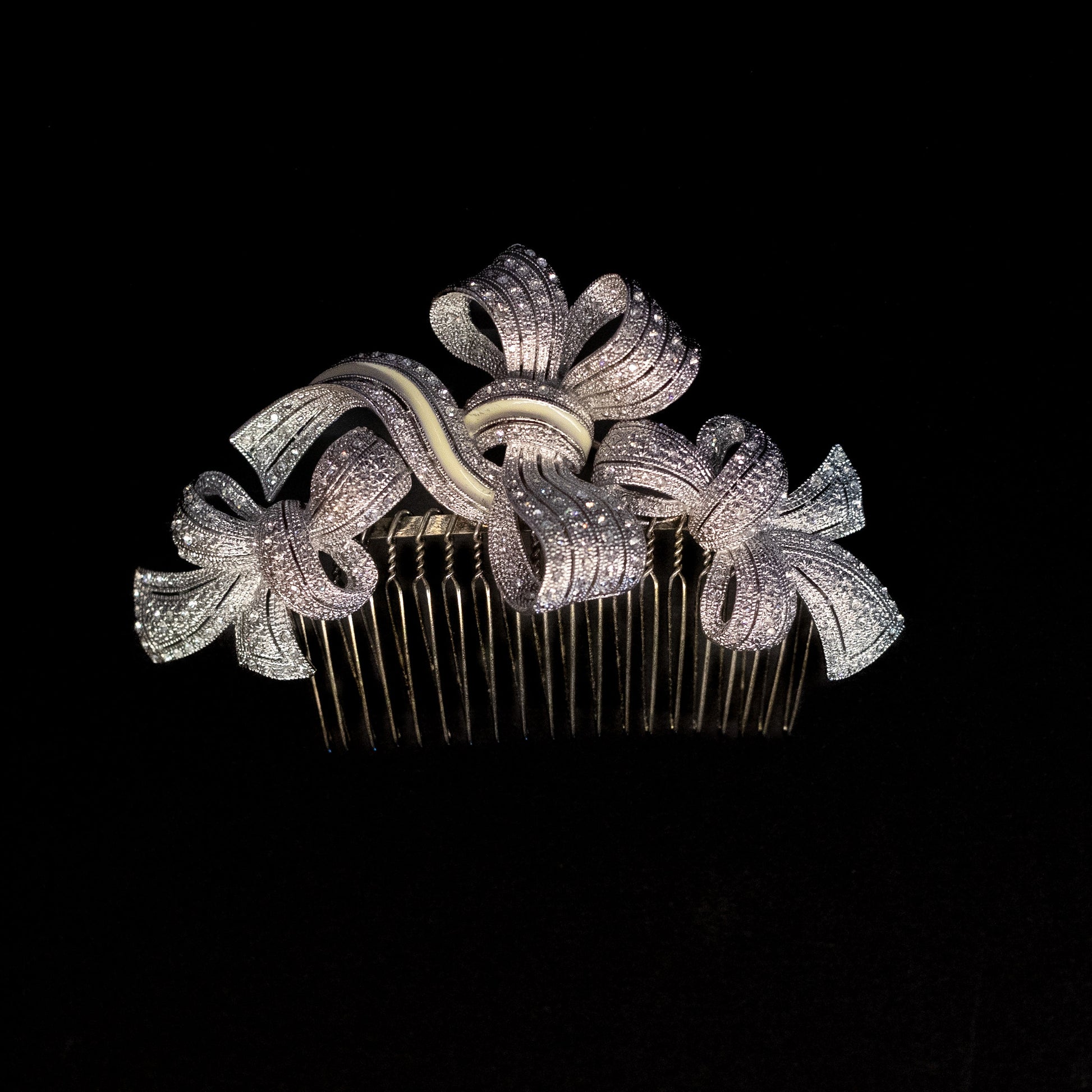 Pente estilo vintage australiano feito em metal, com esmalte e cristais.
